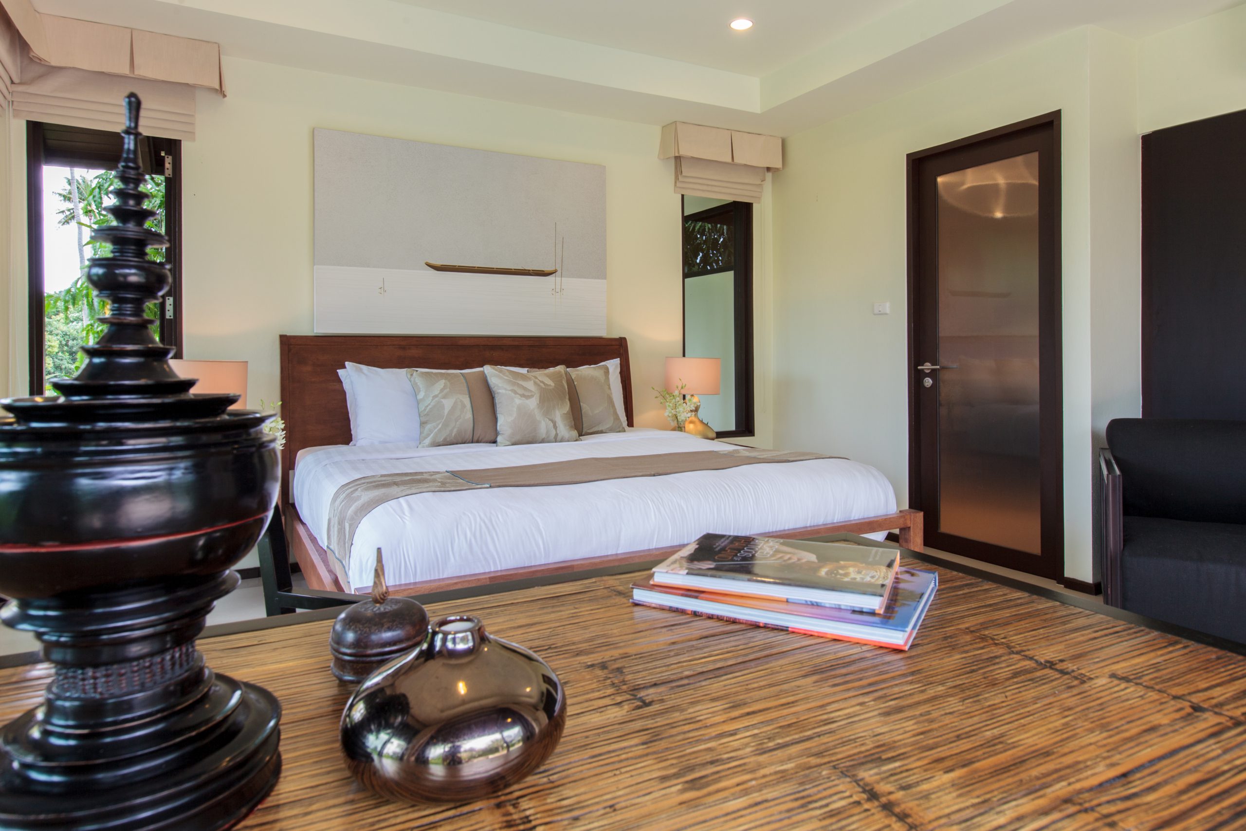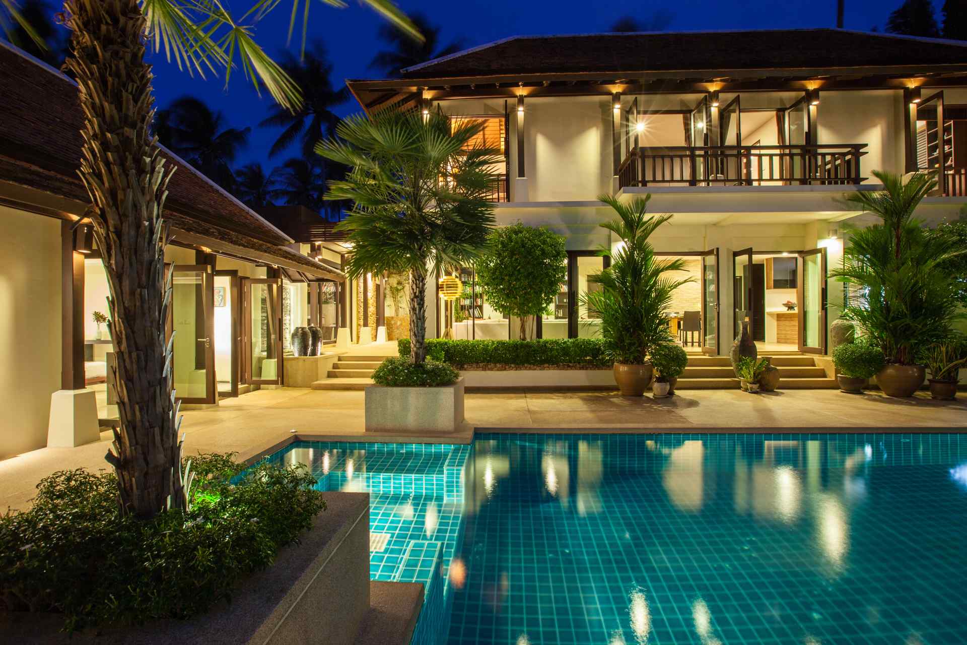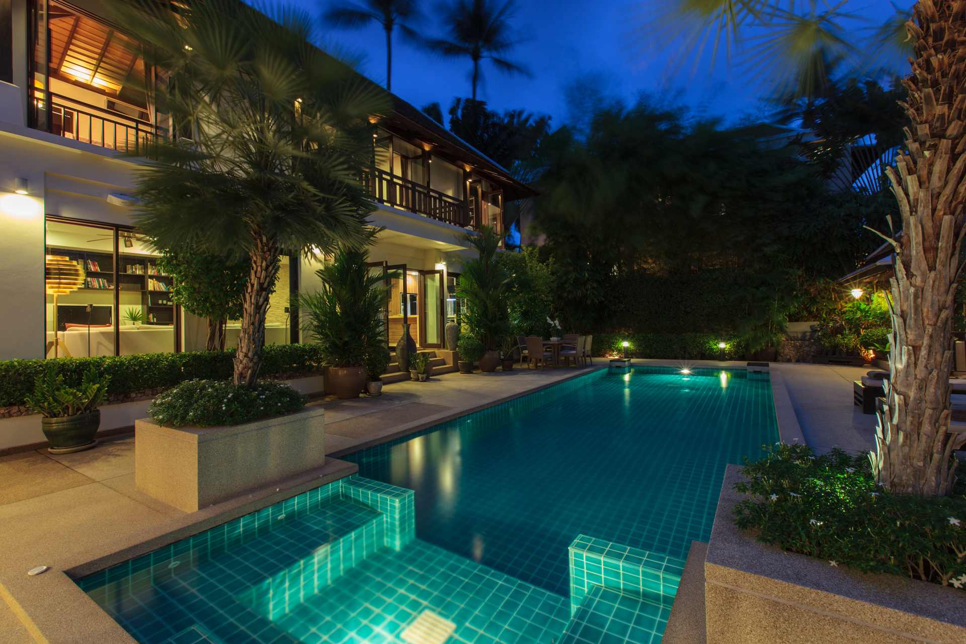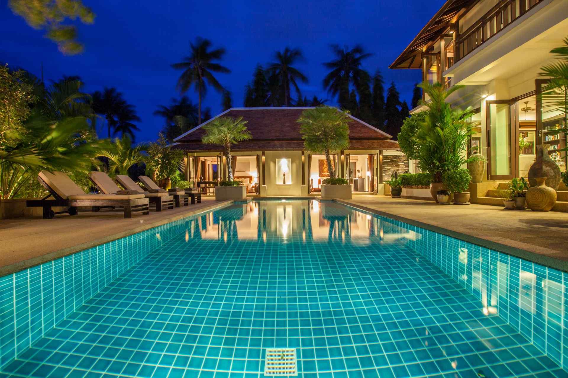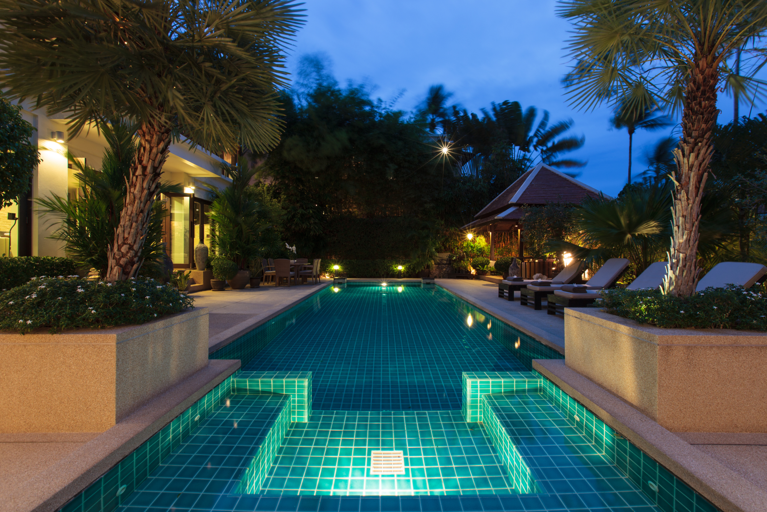Modern and elegant, Villa sits within a gorgeous landscaped garden. Featuring stylish interiors and fine facilities, it serves as an ideal accommodation choice for families and couples. 150 meters to the beach. Located within close proximity to an array of renowned attractions like the Big Buddha statue, shops, nightlife spots and restaurants. Gorgeous landscaped garden. Ideal for accommodating families and couples. Cozy interiors designed in a contemporary style. The spacious outdoor compounds of the villa feature a sparkling pool flanked by sun loungers, beautiful outdoor furniture, a breezy pavilion and plenty of tropical greenery.