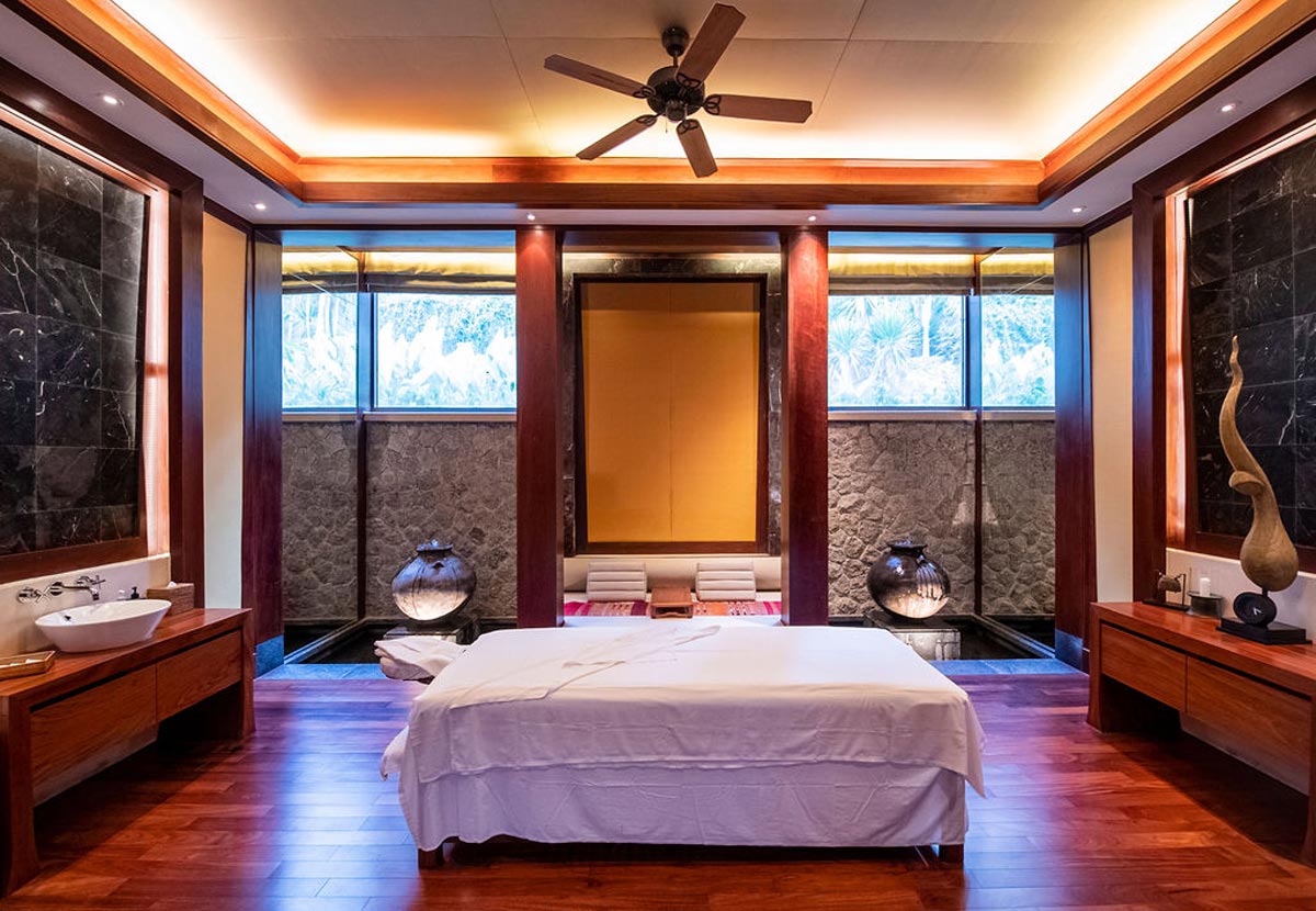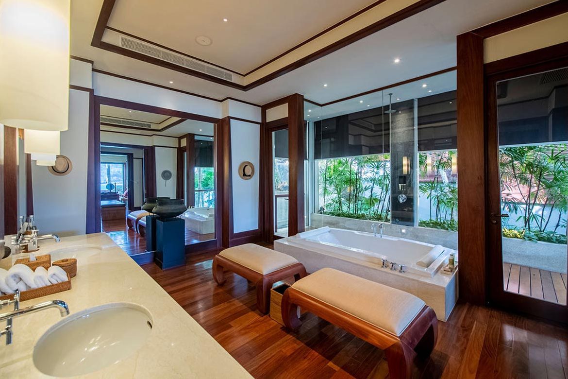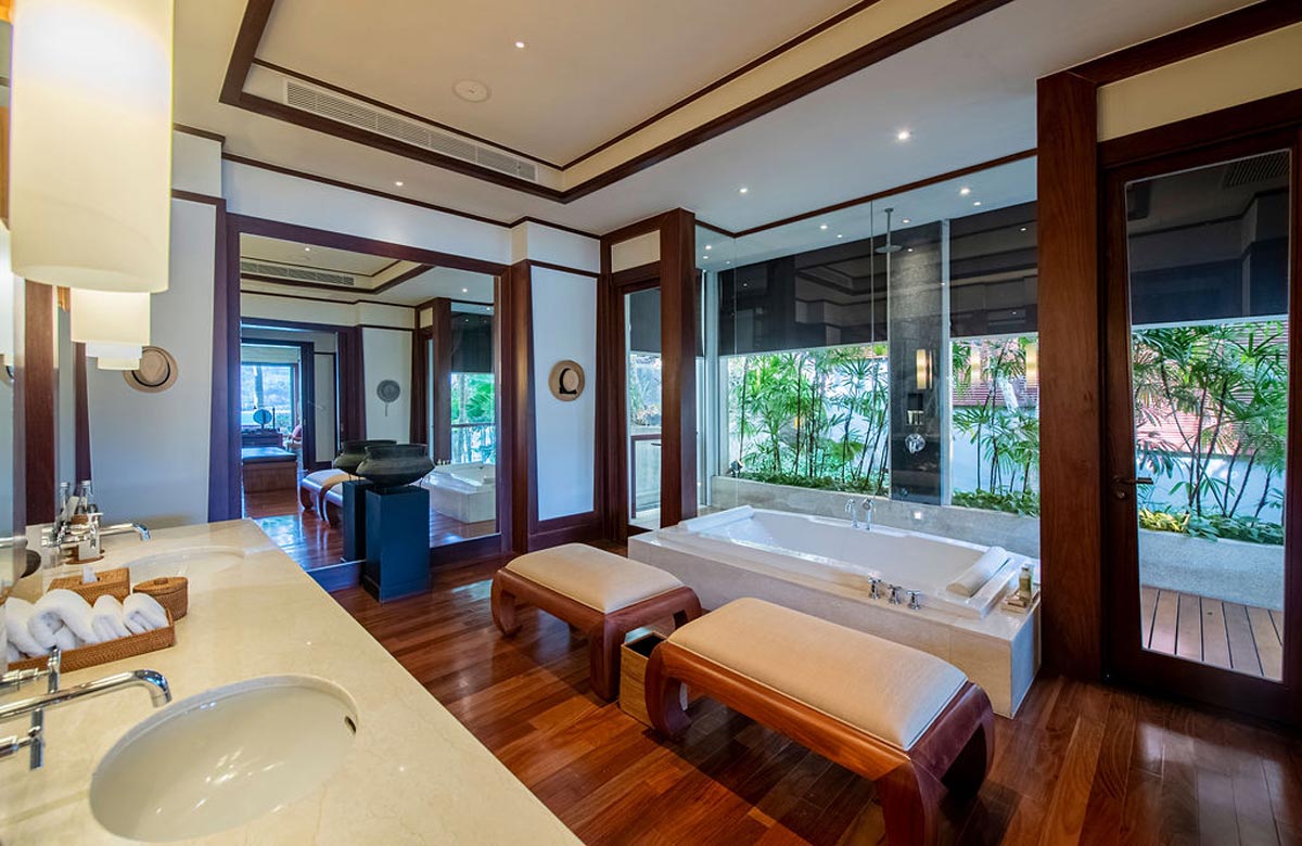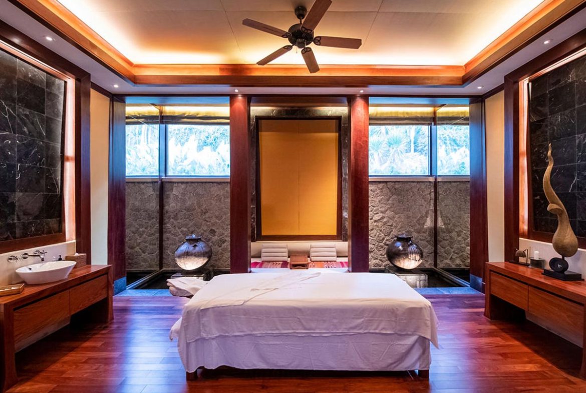 The four spacious bedrooms are strategically placed in each corner of the penthouse to allow more space and privacy. Each bedroom also features tall glass doors and windows framing the bay or garden views. The master bedroom complex also comes with a private massage bed, his and her wardrobes, indoor and outdoor showers, a bathtub for two, and its own furnished balcony.
