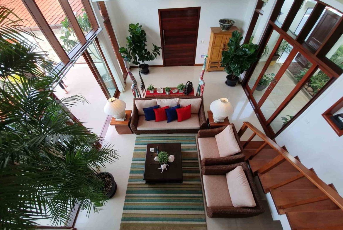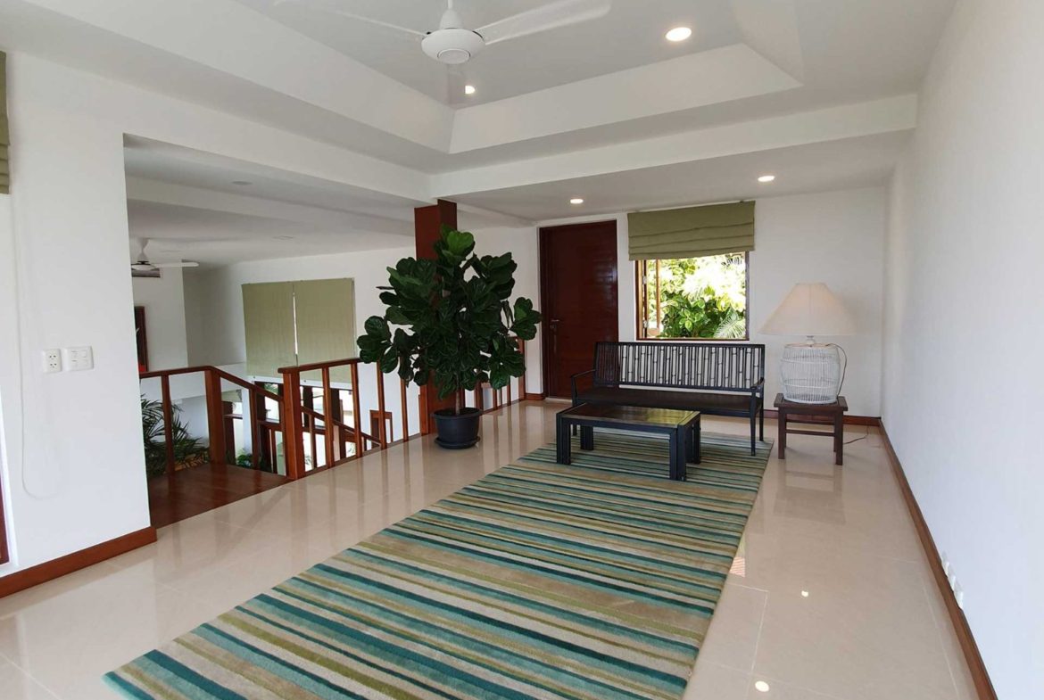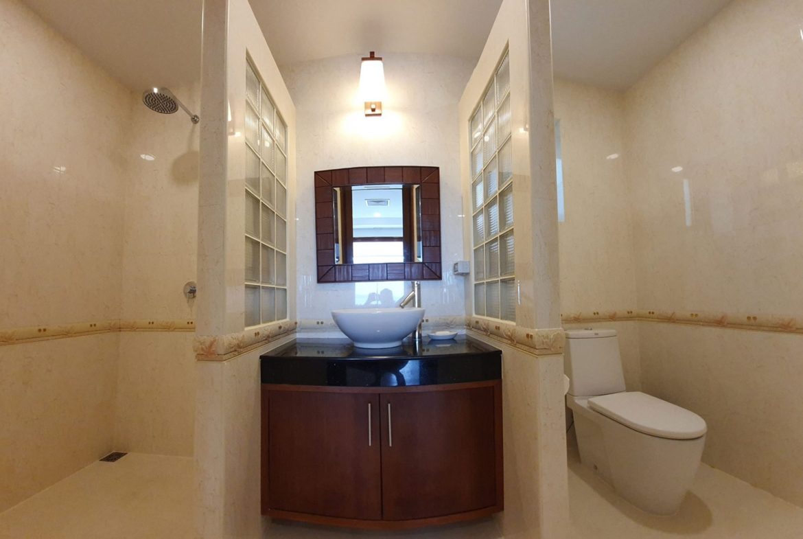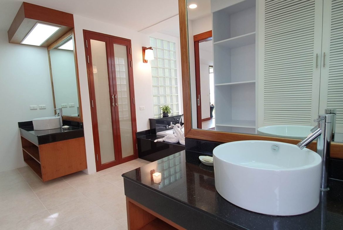 Its in a private residential community, has an easy access, it takes only 2 minutes driving from the main road. Lovely panoramic sea view from every storey. Plenty of different outside shaded spaces like balconies, pool deck or roof top terrace. Large infinity edge swimming pool with natural black stone waterfall. Western fully equipped kitchen with island top composed of black granite. Wrap around with matured landscaped garden. It is a Great villa that is suitable for large families and it is so perfect for rental investment.