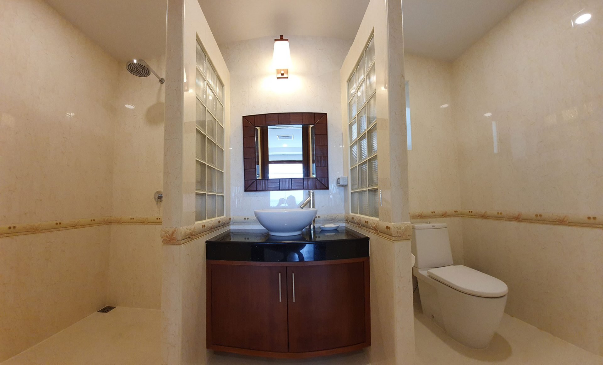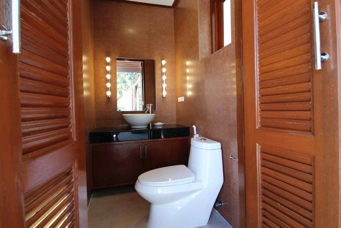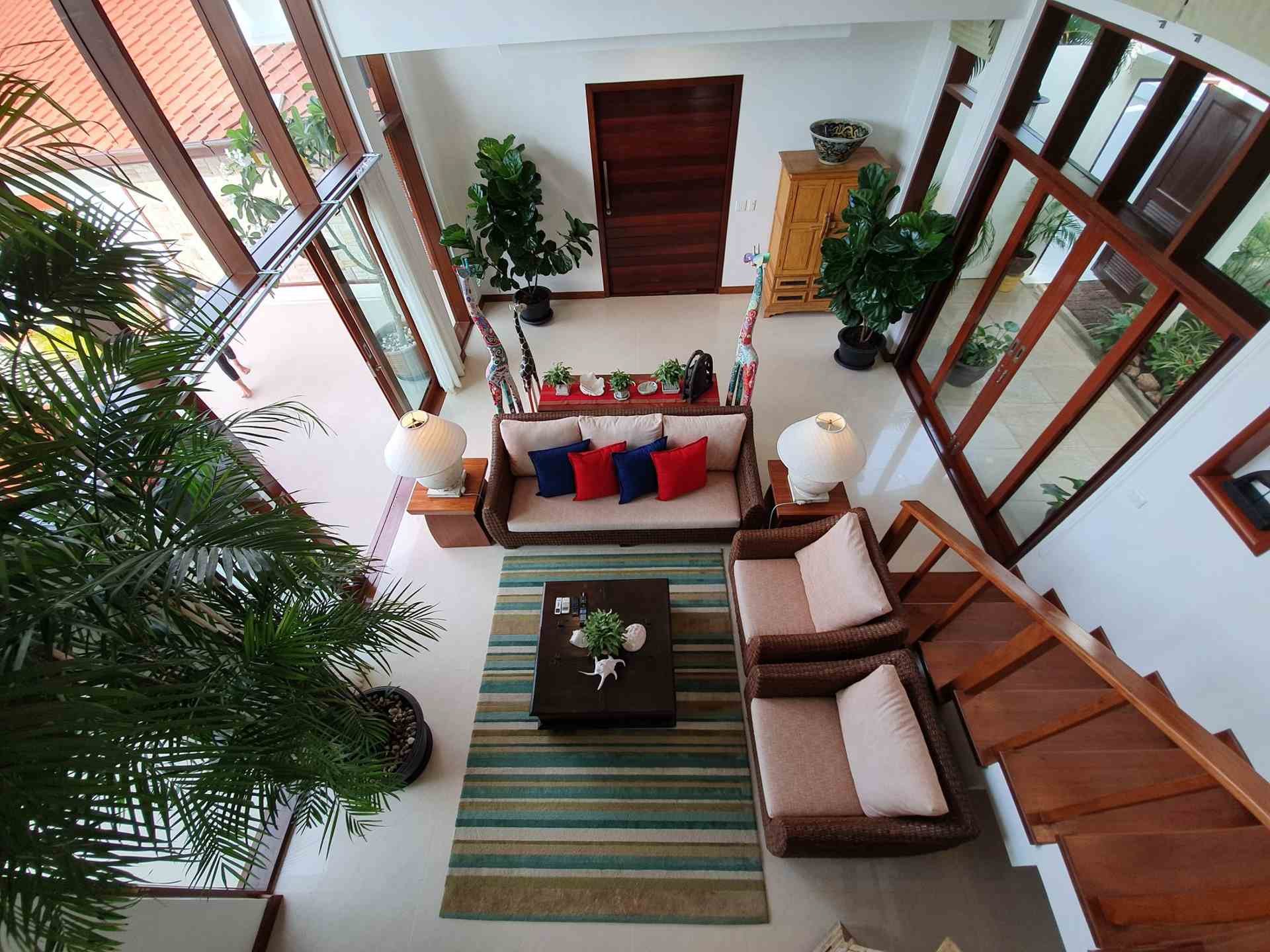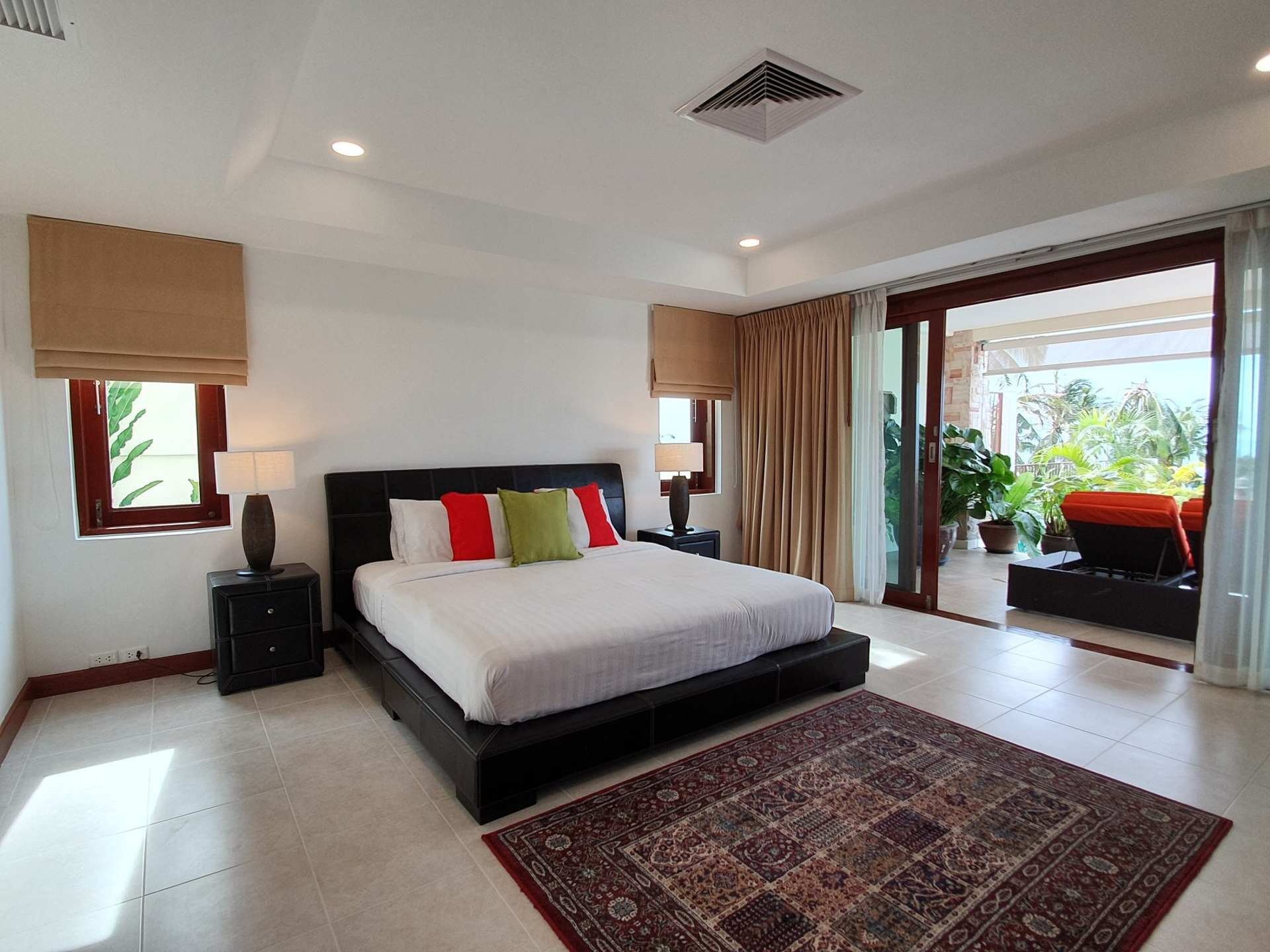 Its in a private residential community, has an easy access, it takes only 2 minutes driving from the main road. Lovely panoramic sea view from every storey. Plenty of different outside shaded spaces like balconies, pool deck or roof top terrace. Large infinity edge swimming pool with natural black stone waterfall. Western fully equipped kitchen with island top composed of black granite. Wrap around with matured landscaped garden. It is a Great villa that is suitable for large families and it is so perfect for rental investment.